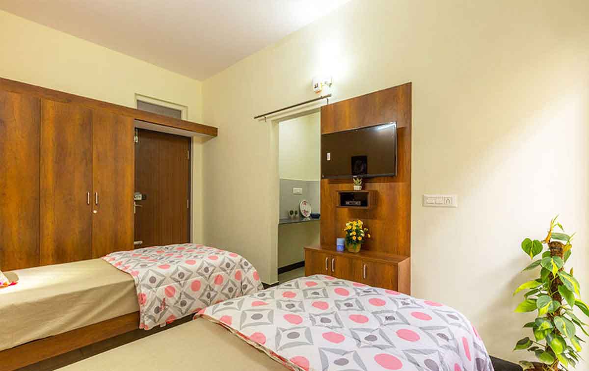 Located in the heart of Gurgaon, HelloWorld Jasmine is a luxurious coliving accommodation for boys and girls designed with a subtle white and orange interior, chic furniture, king-size comfortable beds, beautiful dining area embraced with greenery and plants.The property offers private, double and triple sharing rooms for every age group like a student, professionals, travellers, working employees or single parents in a reasonable range. HelloWorld jasmine is the ideal space for shorter as well as longer stay included with all present-day facilities such as wifi, attached bathroom, geyser, washing machine, housekeeping, power backup, AC. Aside from this, pets and smoking are not allowed, supermarkets and general stores are a 5 min walking distance, online cabs are easy to book from HelloWorld jasmine. Book now and experience your stay in this stunning paying guest accommodation packed with modern conveniences. Our services will give you the best experience of all time guaranteed with a comfortable and convenient stay. Find your ideal space today!