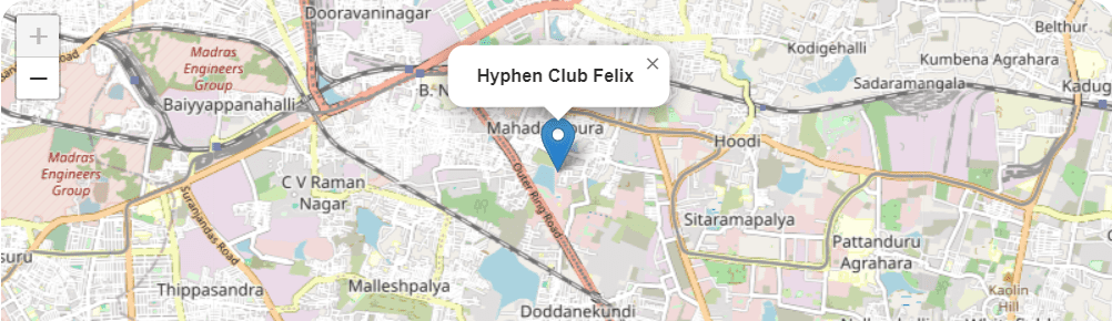 Hyphen Club Felix is one of the most elegant and modern places to live. It is located above the Khatabook office in the Mahadevpura. It consists of fully furnished and well-equipped private rooms with TV, WiFi, desk, air conditioning, attached bathroom, etc. Key amenities such as cleaning service, high security, geyser, washing machine, induction, fridge, modular kitchen, stylish decor, modern interior, backup power, electricity supply, and much more. The environment is very safe, clean, and full of greenery. It has perfect connections to the train station and the airport. Experience community living with like-minded people in this beautifully landscaped coliving estate.