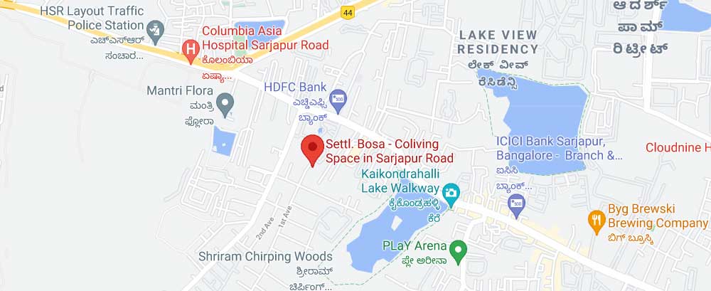 Settl. Bosa is a unique Coliving space located on Sarjapur Road, Bangalore. It offers single sharing and studio apartments with all-inclusive amenities for students, families, and working professionals. Shopping complexes like Market Square Mall, medical infrastructure like Spandana Hospital, and fun spots like Kaikondrahalli Lake are easily accessible via all modes of transport. You are guaranteed a convenient and comfortable journey with them.