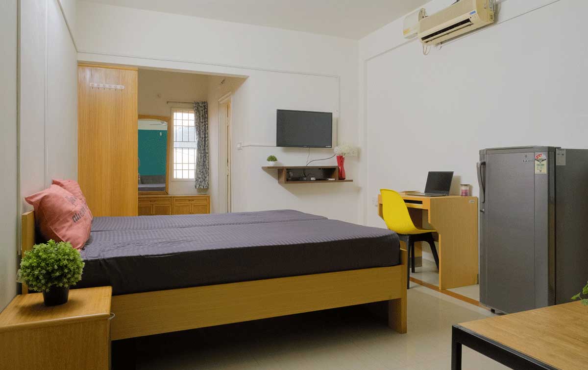 Are you looking for a comfortable, safe, and affordable co-living space? Welcome to Settl. Springfield! It offers fully-furnished private and double sharing rooms at an affordable price range. This beautifully designed co-living property is like a dream come true for many. It is well-equipped with modern-day amenities such as 24/7 power backup, regular cleaning and sanitizing, high-speed internet, on-site laundry, tech-enabled security, modern furniture, etc. Other household essentials like kitchen utensils, air conditioners, TV, water heater, and many others are available within the monthly rent. It is located in a well-connected area with seamless connectivity to the Rashtriya Vidyalaya metro station and other parts of the city. Book now!
